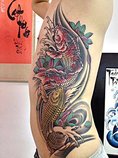 Màu vàng là màu tượng trưng của sự may mắn, thịnh vượng, việc bạn xăm hình cá chép màu ngoài ra, màu sắc của những hình xăm cá chép cũng được thể hiện qua từng giới tính khác nhau.